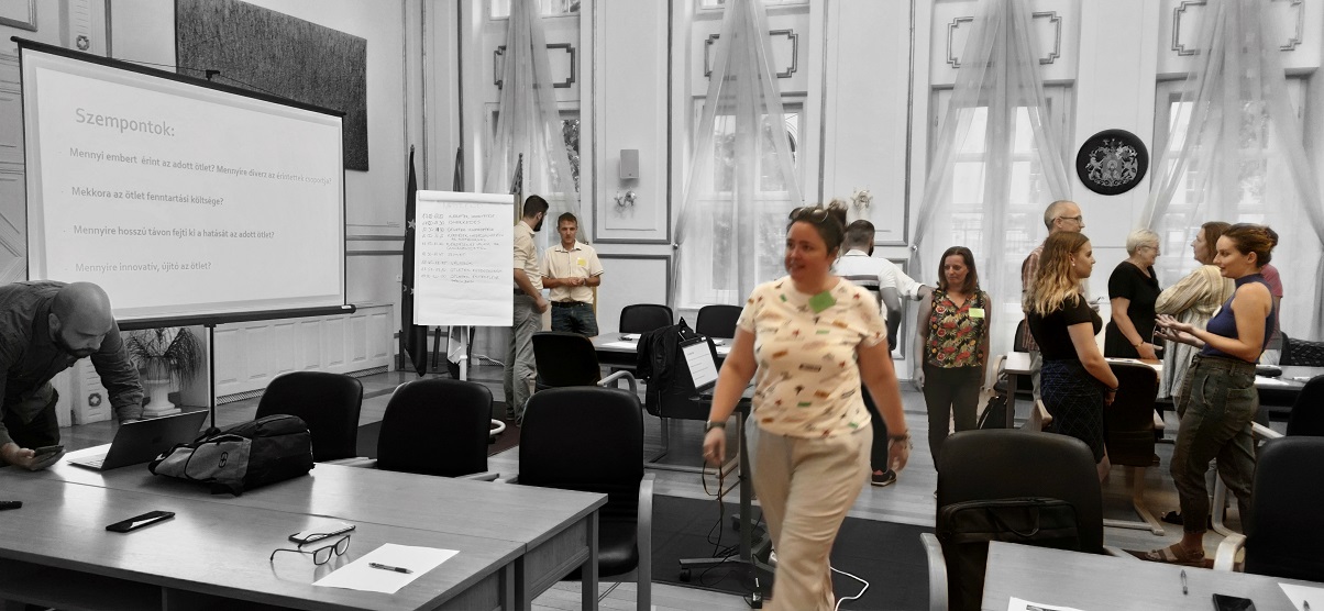 Megkezdte munkáját a Részvételi Tanács! Az előzetesen jelentkezők közül (véletlenszerűen) kiválasztott, összesen húsz meghívott miskolci polgár közül tizenketten tudtak eljönni és részt venni a délutántól estig tartó ülésen hétfőn. A Városháza Dísztermében tartott esemény keretében a résztvevők – kiegészülve a Polgármesteri Hivatal illetékes munkatársaival, a szakmai segítséget nyújtó szakemberekkel – először megismerkedtek a Részvételi költségvetés működésével, az értékelő mechanizmus részleteivel, majd nekiláttak a munkának. Egyenként szóba került minden olyan ötlet, javaslat, amit a városlakók küldtek be a megelőző hetek folyamán, s amelyek már átestek az előzetes szakmai kontrollon. Kérdések és válaszok követték egymást az elképzelések megvalósíthatóságára, műszaki és egyéb részleteire vonatkozóan. Ezt követően indult meg az ötletek értékelése (pontozással). A folyamat még a héten folytatódik, a tanácstagok részvételével, csütörtökön délután. Ennek nyomán alakulhat majd ki az a lista, ami a közös elhatározással kiválasztott, megvalósításra leginkább érdemesnek tartott állampolgári javaslatokat fogja tartalmazni.