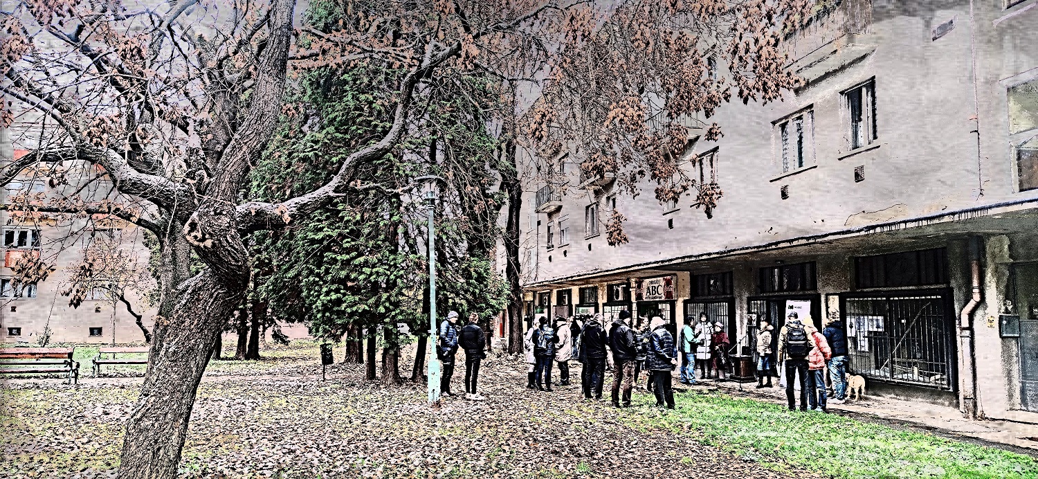 - – közösségi tér (a KÉK közösség hamarosan birtokba veszi a megüresedett zöldségbolt helyiségeit) jövőbeni kapcsolata a térrel: a (civil társadalmi) szolgáltatás nem fog „megállni” a bejáratnál; kihajtható napvitorla, időjárás függvényében, esetlegesen vendéglátó tevékenység?