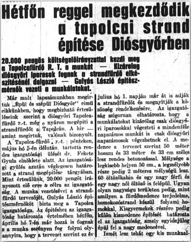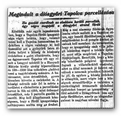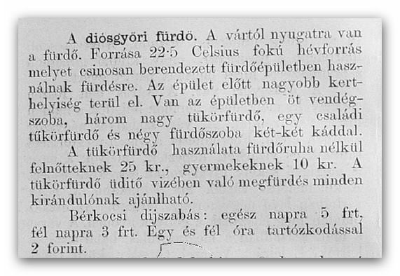 Érdekesség: az 1930-as évektől létezett intézményesített fürdő neveként az első időszakban a „diósgyőri tapolca-fürdő” nevet használták, vagy mint korabeli képeslapokon is olvasható, a „Diósgyőr-Tapolcza” helymegjelölést. Ennek oka nem az, hogy bármiféle összefüggésben lett volna az akkori Görömböly-Tapolca (ma Miskolctapolca) városrésszel, hanem hogy a „tapolca” kifejezés eredetileg fürdőre, gyógyvízre utal.