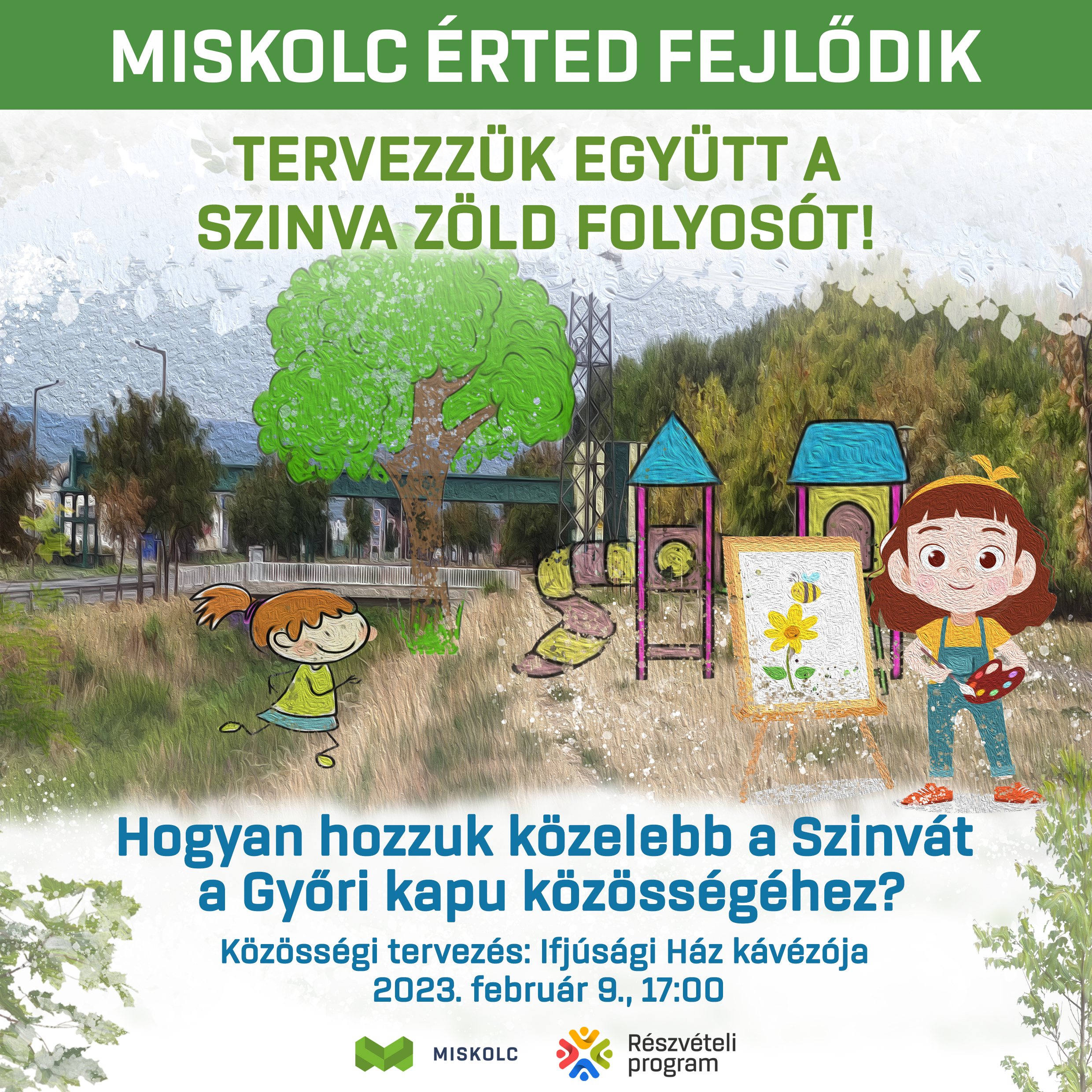 Február 9-én, csütörtökön 17 órától ismét lehetősége lesz bárkinek elmondani a véleményét az Ifjúsági Ház kávézójában. A Szinva Zöld Folyosó-projekt részeként ugyanis több helyszínen megújul a Miskolcot átszelő patak környezete. Azonban az a cél, hogy a tervek az állampolgárok javaslatai mentén készüljenek majd el, hiszen az emberek akkor érezhetik igazán magukénak a fejlesztést, ha abban visszaköszönnek a vágyaik, igényeik.